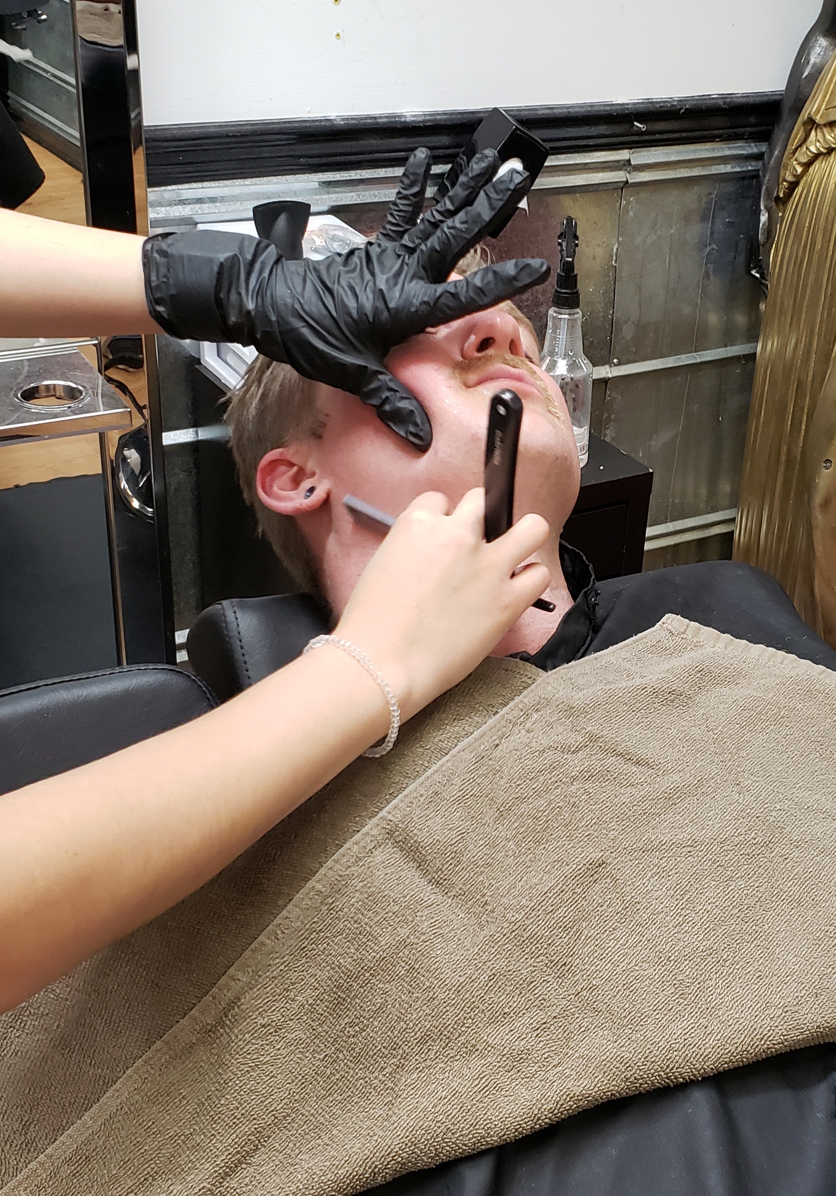 Alex has said for years that He wanted to have a straight razor shave one day. On every vacation we have been on in the last few years he has been on the lookout for someone that offered it. Well on this particular day he actually found it so he went for it.